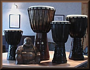 Trommeln und Schamanentrommeln, Rasseln, Räucherstäbchenhalter, Skulpturen und viele